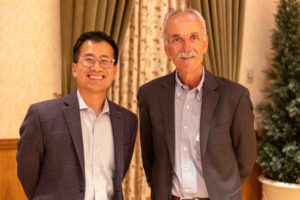 Bob Trinh, CEO of The Villages Health, left, was welcomed and introduced by The VHA President, Peter Russell.